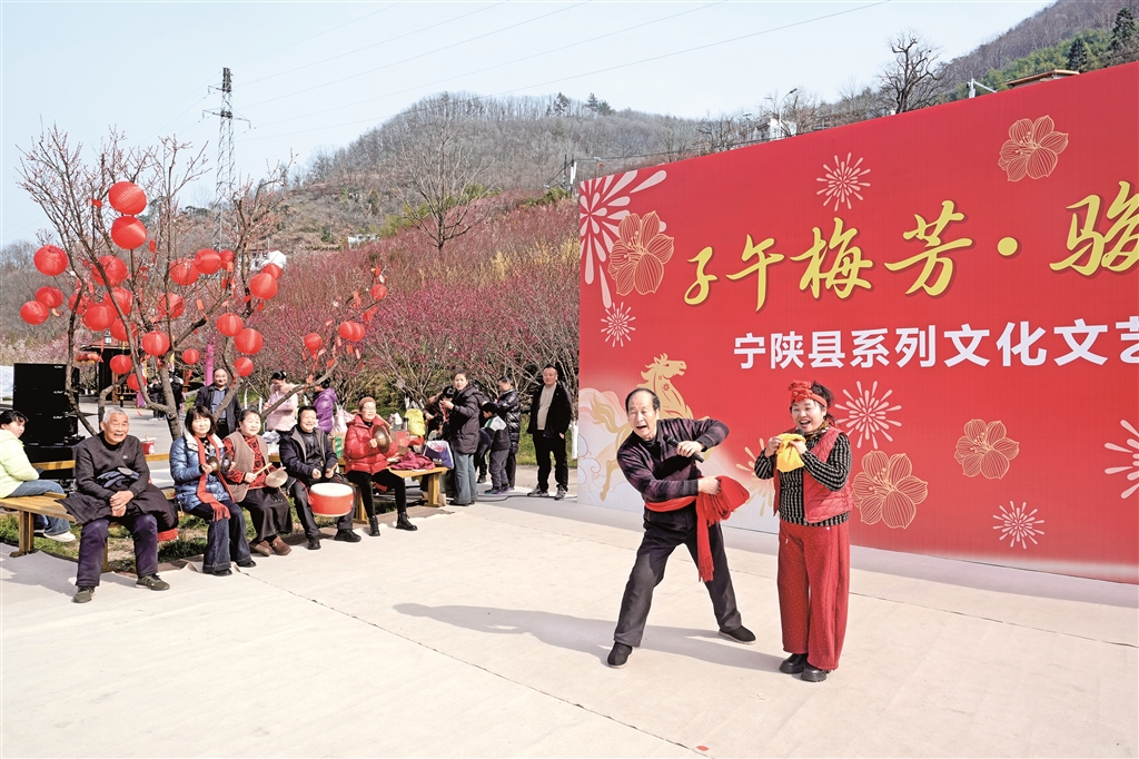 近日,位于宁陕县梅子镇的子午梅苑内,万株梅花开得正盛,暗香浮动间,一场即兴的安康小场子表演惊艳四方游客,成为宁陕县推动文旅深度融合的生动缩影。