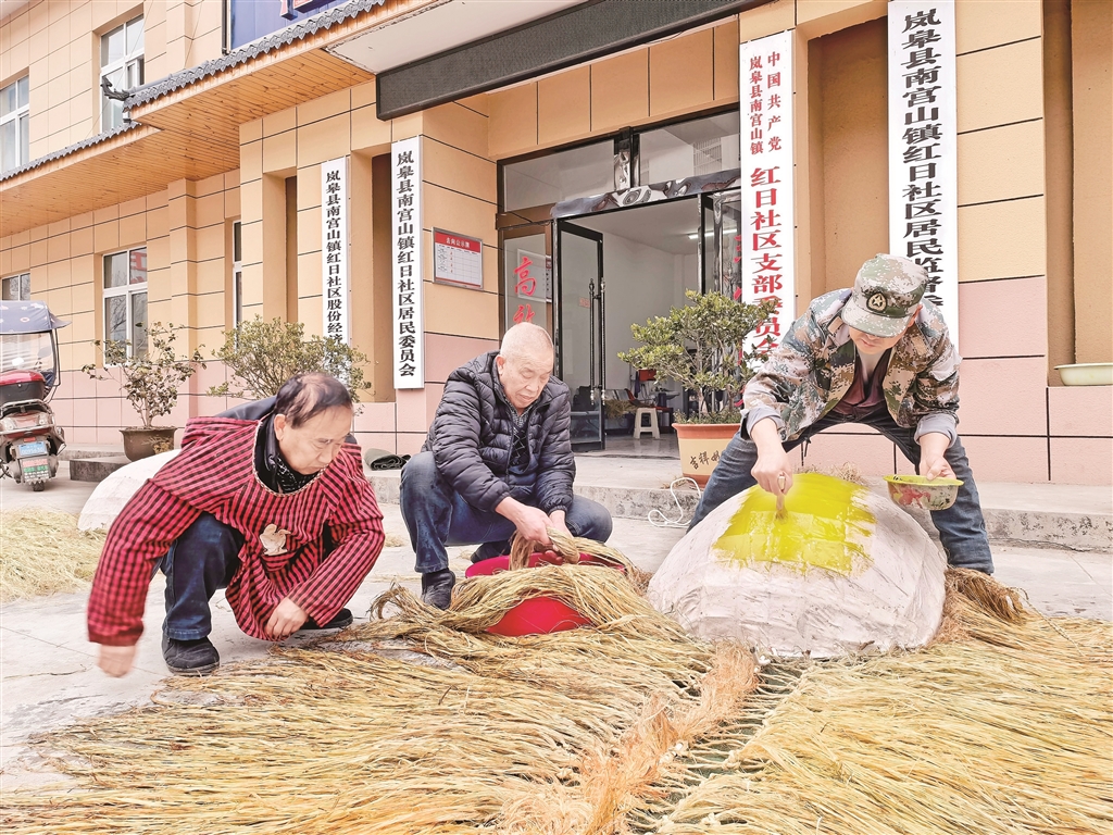 今年72岁的刘明松,是岚皋县南宫山镇红日社区的居民,也是一位扎狮“守”艺人。红日社区素有正月舞狮的传统,这里的狮子被称为“巴人雄狮”,属于火狮,寄托着祈福纳祥的美好寓意。每年腊月,刘明松都会和乡亲们一起手工扎狮,这一扎,便是五十余年。