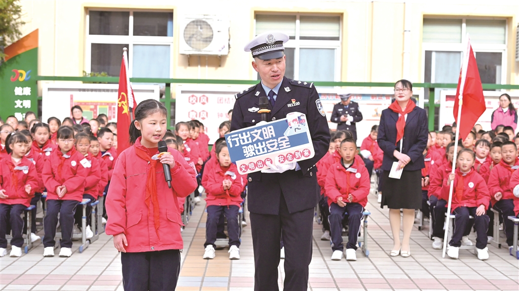 交警向学生讲解交通安全知识
