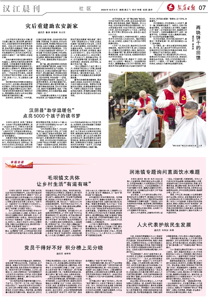 为破解龚仕银等农户灾后重建审批烦琐、农户跑腿多的难题,区、镇联动开通农房重建“绿色通道”,推行“多部门现场联合办公”机制,汉滨区住建部门核房屋设计安全性、工匠资质、农房风貌管控,自然资源部门定宅基地合规性。与此同时,相关部门按照政策,各司其职,协同推进:镇农业农村服务中心、综合与经济发展办、公共事业服务中心、供电所等工作人员主动上门,现场解决用电、用水、出行道路等问题,在宅基地旁,完成材料提交、现场核验、初步审批,全程不用农户跑一趟。