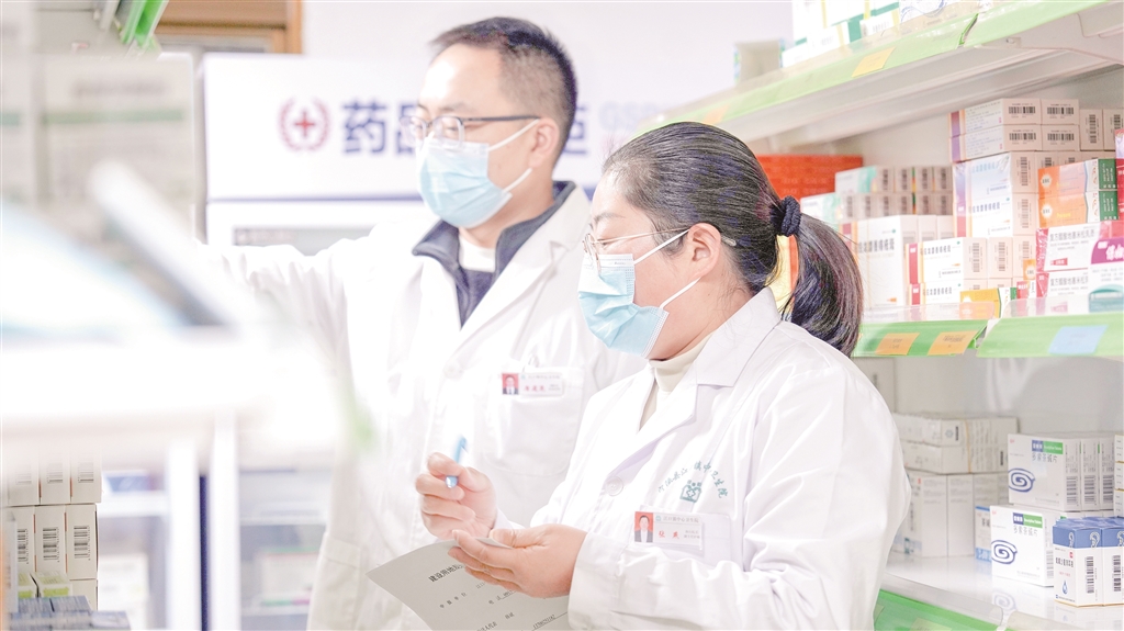 张燕和同事在盘点药品