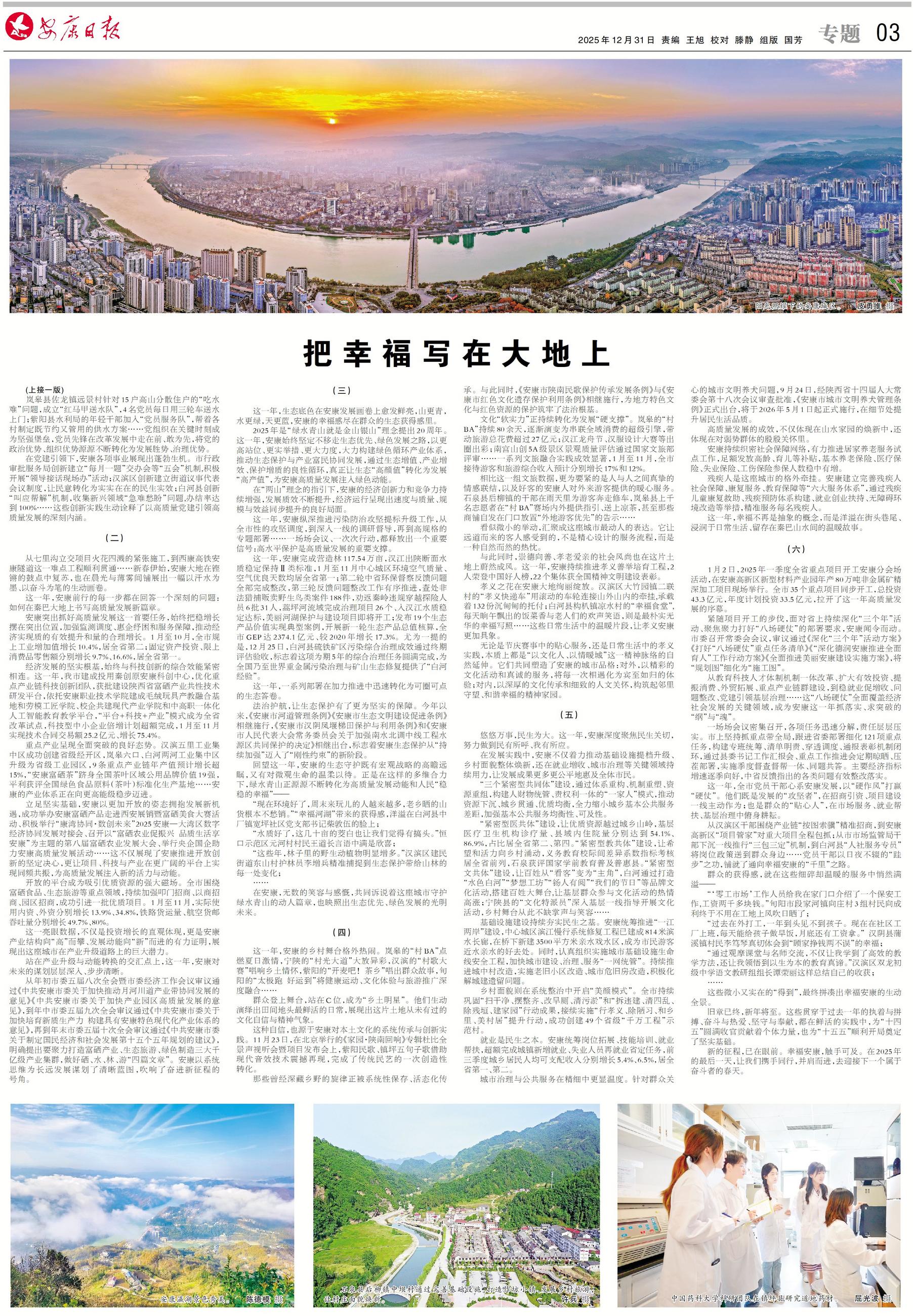 岁序更替,华章日新。2025年的日历已翻至终页。站在“十四五”圆满收官、“十五五”壮阔开篇的重要历史交汇点上,回望过去,300万安康人民勠力同心、砥砺前行,奏响高质量发展的时代强音,在金州大地上绘就了波澜壮阔的发展长卷。