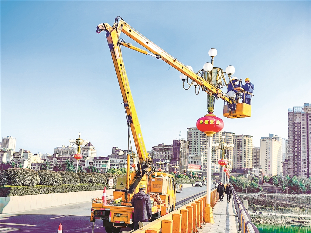 日前,安康市市政园林处集中开展了照明设施巡查工作。图为检修工作人员对安康城区汉江一桥上的路灯进行检修。