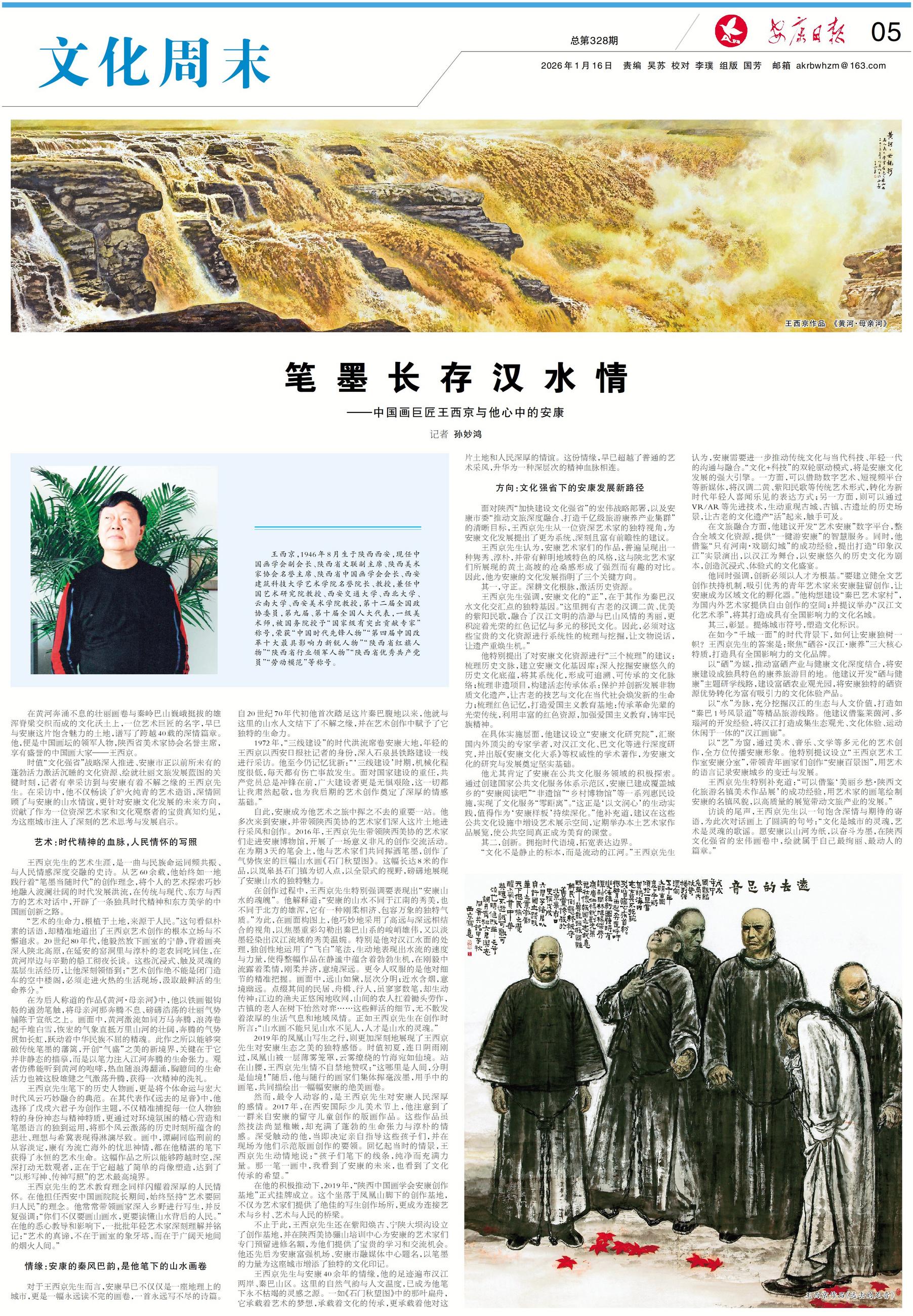 时值“文化强省”战略深入推进、安康市正以前所未有的蓬勃活力激活沉睡的文化资源、绘就壮丽文旅发展蓝图的关键时刻,记者有幸采访到与安康有着不解之缘的王西京先生。在采访中,他不仅畅谈了炉火纯青的艺术造诣,深情回顾了与安康的山水情谊,更针对安康文化发展的未来方向,贡献了作为一位资深艺术家和文化观察者的宝贵真知灼见,为这座城市注入了深刻的艺术思考与发展启示。