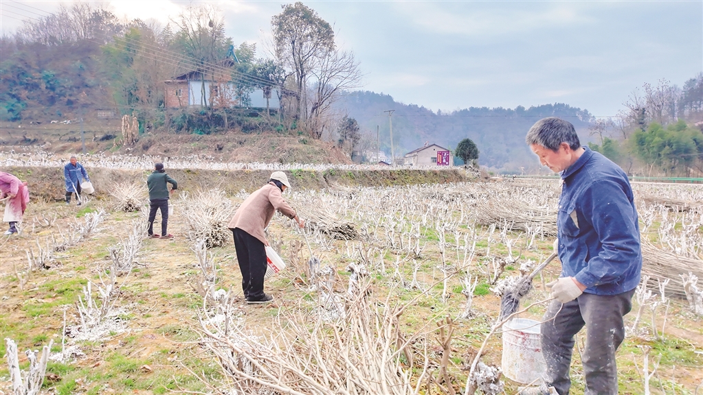 深冬时节,秦巴山区寒意渐浓。然而在石泉县饶峰镇饶峰村八组的连片桑园里,却是一派热火朝天的劳作景象:村民们手持毛刷,为一行行桑树仔细涂刷石灰浆。“这层‘防护衣’是桑树过冬的‘保命符’,既能防冻裂,又能杀菌灭虫卵,冬管这一步可不能马虎!”正在劳作的村民王大姐言语间满是对来年丰收的期盼。这片桑园里的精细管护,正是饶峰镇抢抓农时、全域推进冬季桑园管护,为来年蚕桑产业丰产增收夯基固本的生动缩影。