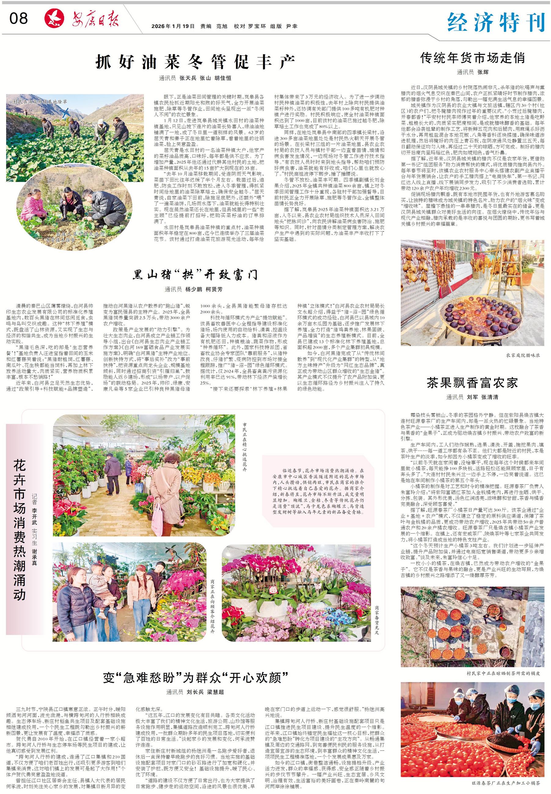 “去年10月油菜移栽期间,受连阴雨天气影响,菜苗下田比往年迟缓了半个月左右。栽苗过后,追肥、防虫工作时刻不敢放松,进入冬季管理,得抓紧时间给地里的油菜除草培土,确保安全越冬。”屈天青说,自家油菜下田前,除施足底肥外,还额外“喂”了一遍菜油饼,几场雨水落下,油菜就能长得特别壮实。现在虽然油菜还长在地里,但县城里的一些“老主顾”已经提前打招呼,把购买菜籽油的订单排满了。