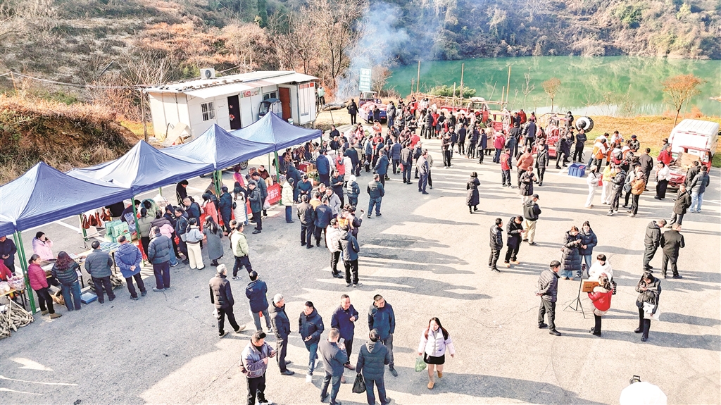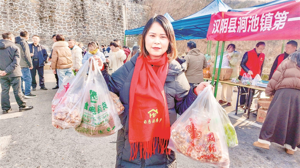 1月16日,汉阴县涧池镇携手汉阴县住建局、经贸局、自然资源局,在东风村举办了“迎新春 促消费 助振兴”消费帮扶主题党日活动,以一场热闹的“爱心集市”,架起助农惠民的“连心桥”。 熊乐 摄