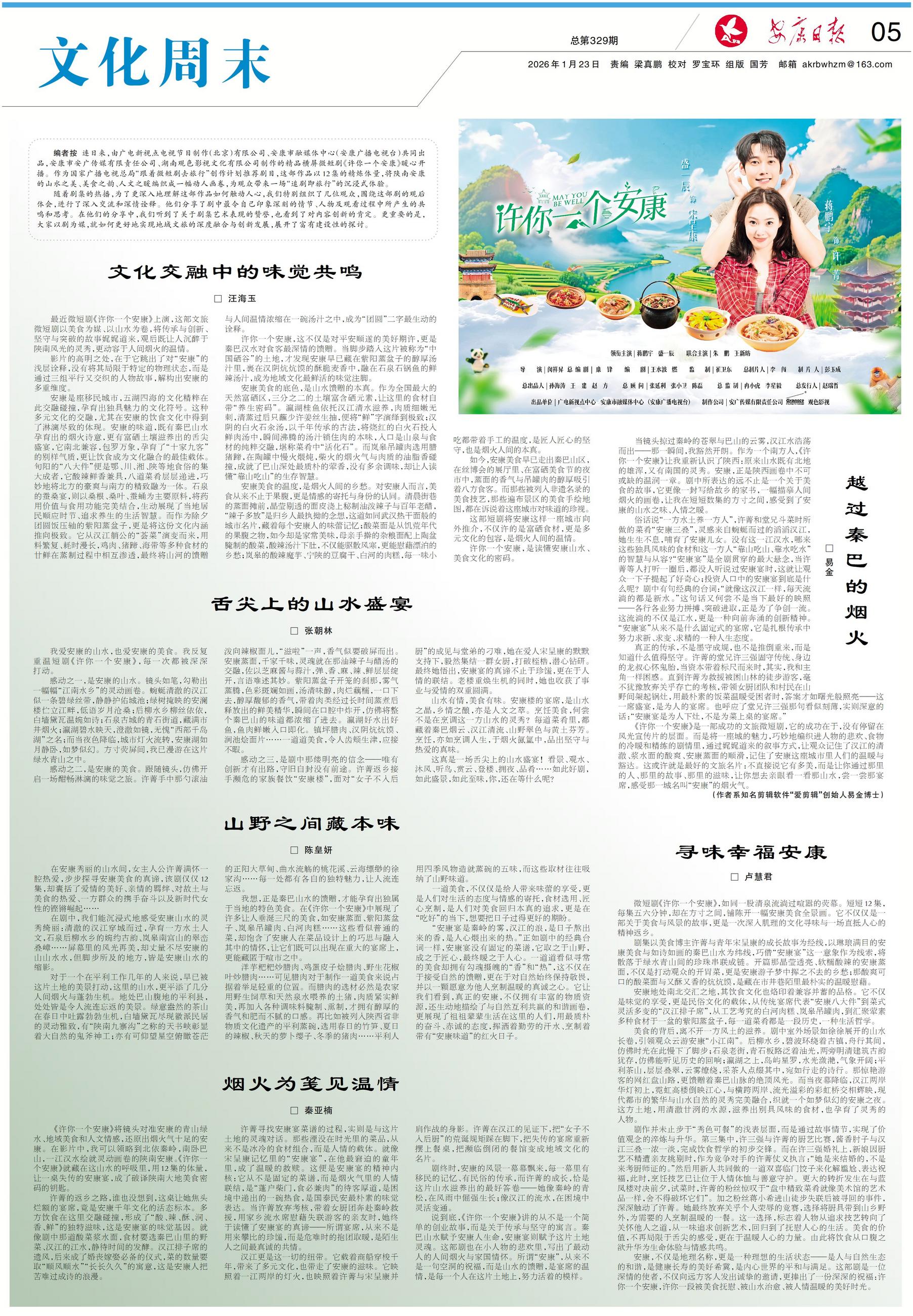 《许你一个安康》是一部成功的文旅微短剧,它的成功在于,没有停留在风光宣传片的层面。而是将一座城的魅力,巧妙地编织进人物的悲欢、食物的冷暖和精练的剧情里,通过娓娓道来的叙事方式,让观众记住了汉江的清澈、浆水面的酸爽、安康蒸面的顺滑,记住了安康这座城市里人们的温暖与豁达。这或许就是最好的文旅名片:不直接说它有多美,而是让你通过那里的人、那里的故事、那里的滋味,让你想去亲眼看一看那山水,尝一尝那宴席,感受那一城名叫“安康”的烟火气。
