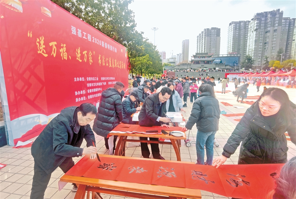2月2日,由市总工会、市文联、市文广局、市工商联等单位联合主办的“送万福、进万家”书法公益春联义写活动在安康中心城区金州广场举行,40名书法家为群众义写春联,送上新春祝福。 吴定国 摄