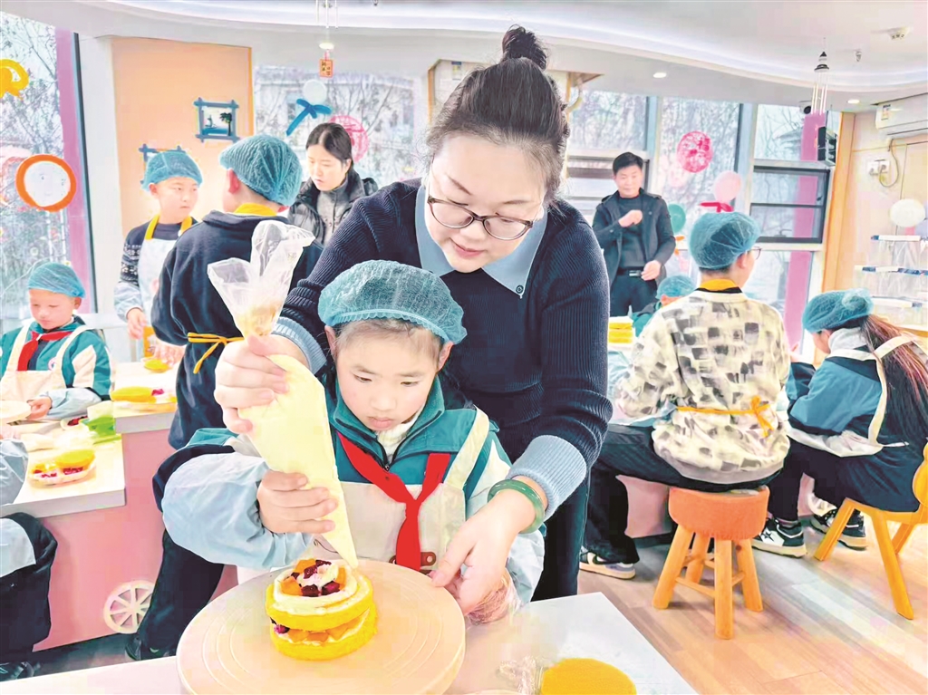 随后,孩子们前往安康博物馆和科技馆参观。在讲解员生动的介绍中,他们深入了解家乡的历史文化,探索科学奥秘,拓宽了视野。在蛋糕制作现场,孩子们围在操作台前,认真跟随蛋糕师学习塑形、点缀等技巧,亲手制作出属于自己的新春蛋糕。