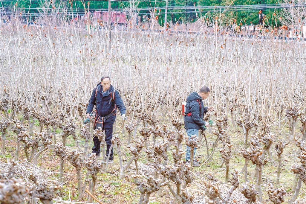 石泉县饶峰镇新华村抢抓冬季桑园管护黄金时节,组织村民对辖区连片桑园集中开展修枝整形、树干刷白等精细化管护作业,为来年桑叶丰产提质、蚕桑产业增效及村民增收筑牢基础。 孟少猛 摄