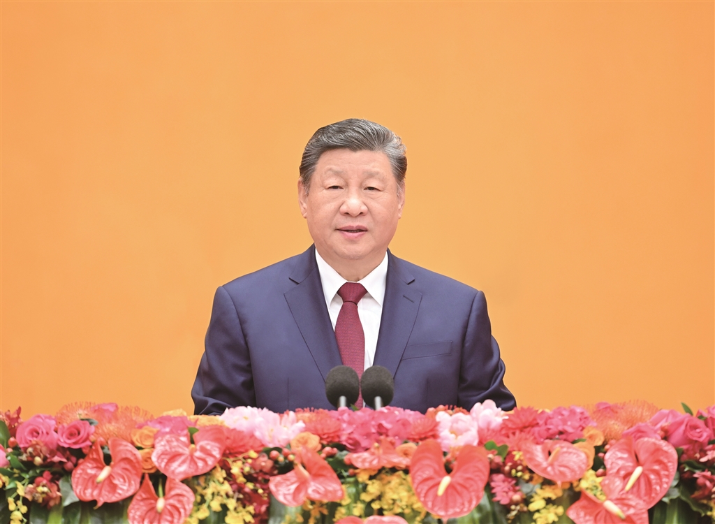 2月14日,中共中央、国务院在北京人民大会堂举行2026年春节团拜会。中共中央总书记、国家主席、中央军委主席习近平发表讲话。 新华社记者 李响 摄