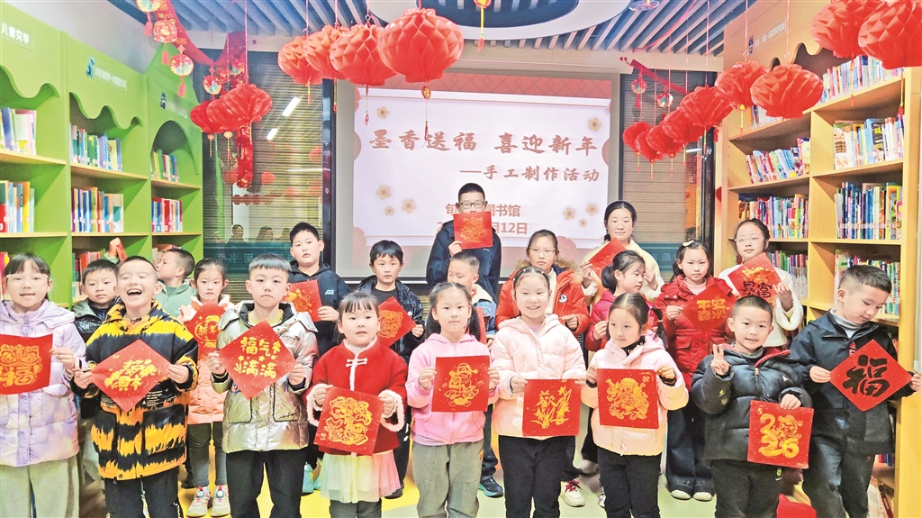 2月12日,旬阳市图书馆举行“墨香送福 喜迎新年”手工制作活动,读者们在指导老师的带领下体验传统拓印技艺,在墨香与纸香中传递节日祝福。