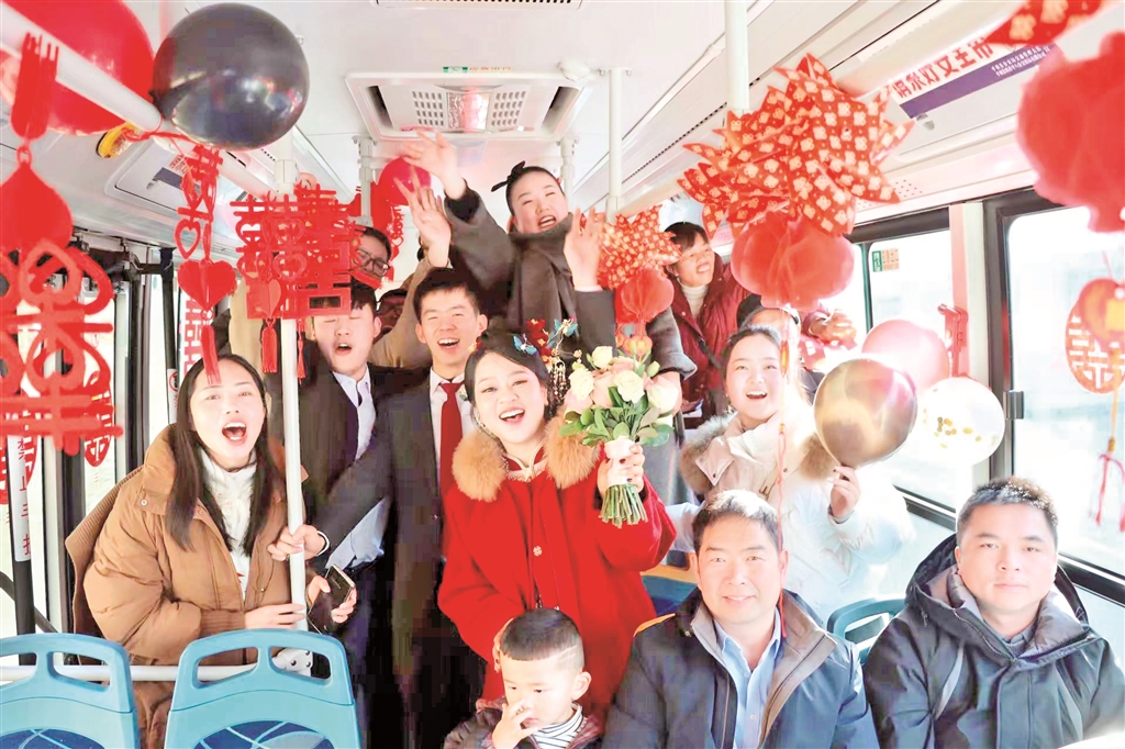 “传统的结婚,一个婚车上就坐两个人。”刘森说,“坐一两个小时,也看不到其他人,没啥意思。在公交车上的话,就是大家一起热热闹闹的。”