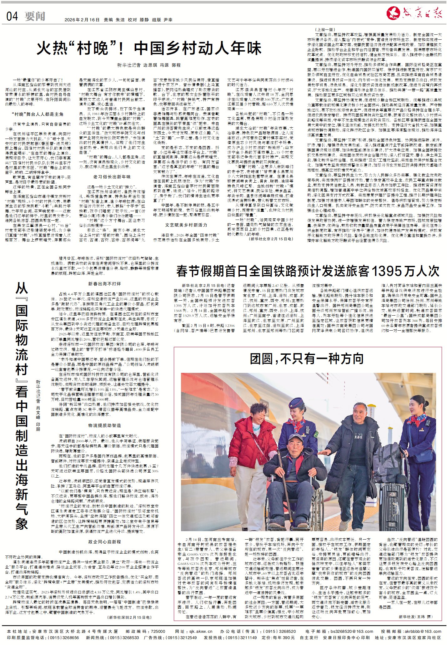 当然,“反向春运”温暖团圆的背后,也藏着现实的关切:年长的父母长途出行是否便利?对此,交通运输部门要为“银发”旅客提供更加细致周到的适老化服务,不仅让更多银发族安心踏上反向团圆路,也有助于均衡客流,缓解春运单向运输压力。