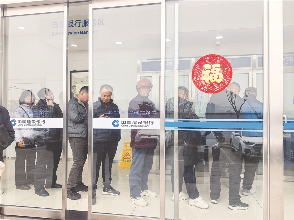 ④ 2月15日,汉滨区江北大道一家24小时自助银行里,取钱的市民排起了长队。 秦 英 摄