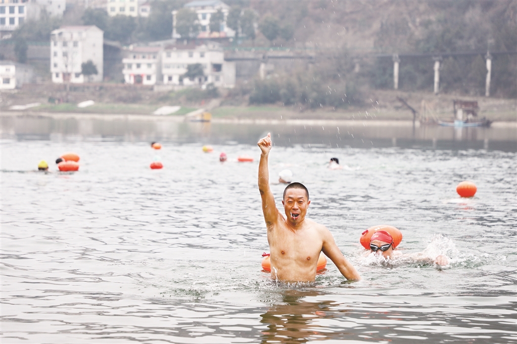 ⑩ 利用春节假期,冬泳爱好者畅游汉江。 王 谧 摄
