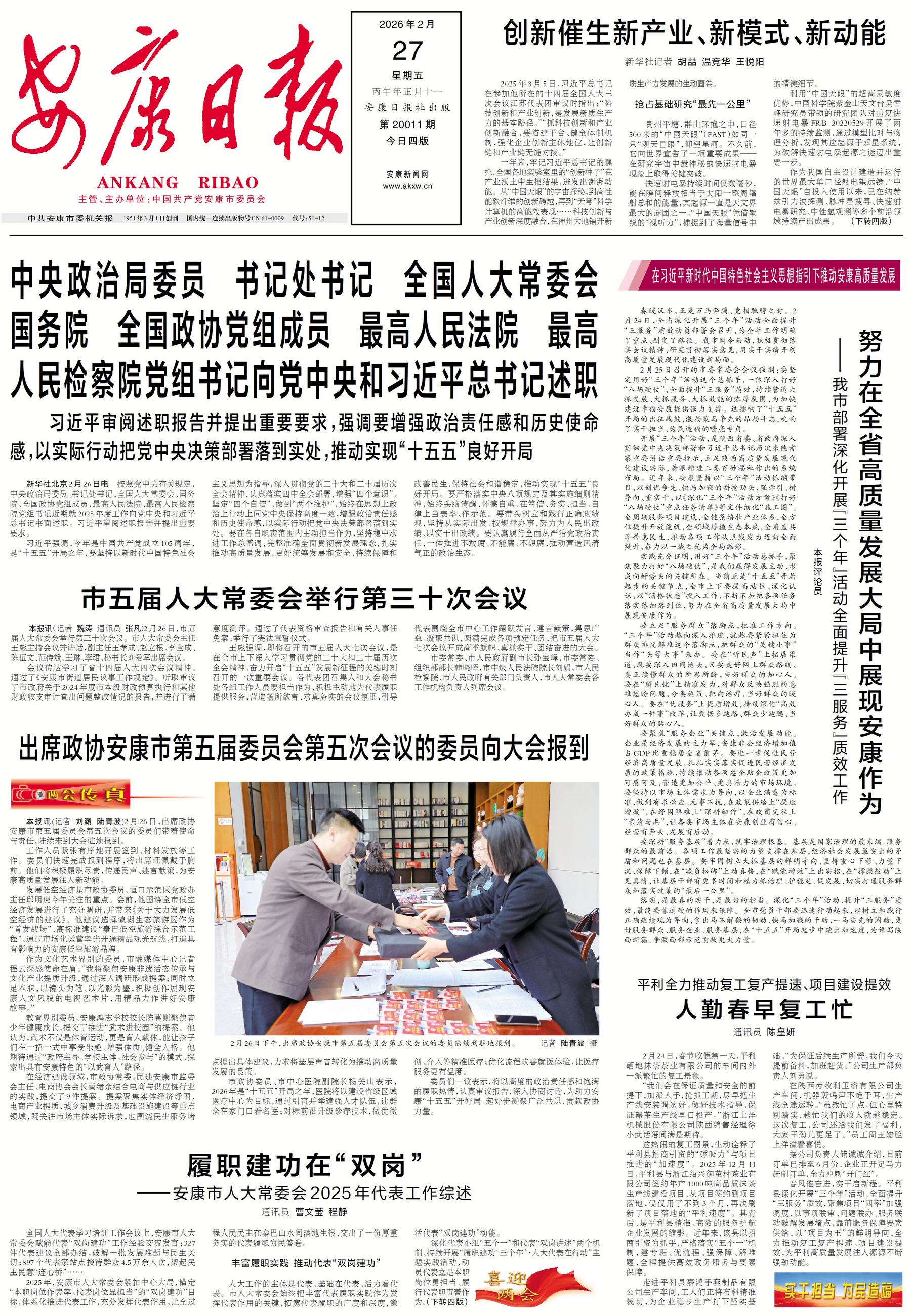实践充分证明,用好“三个年”活动总抓手,聚焦聚力打好“八场硬仗”,是我们赢得发展主动、形成向好势头的关键所在。当前正是“十五五”开局起步的关键节点,全市上下要提高站位、深化认识,以“满格状态”投入工作,不折不扣把各项任务落实落细落到位,努力在全省高质量发展大局中展现安康作为。