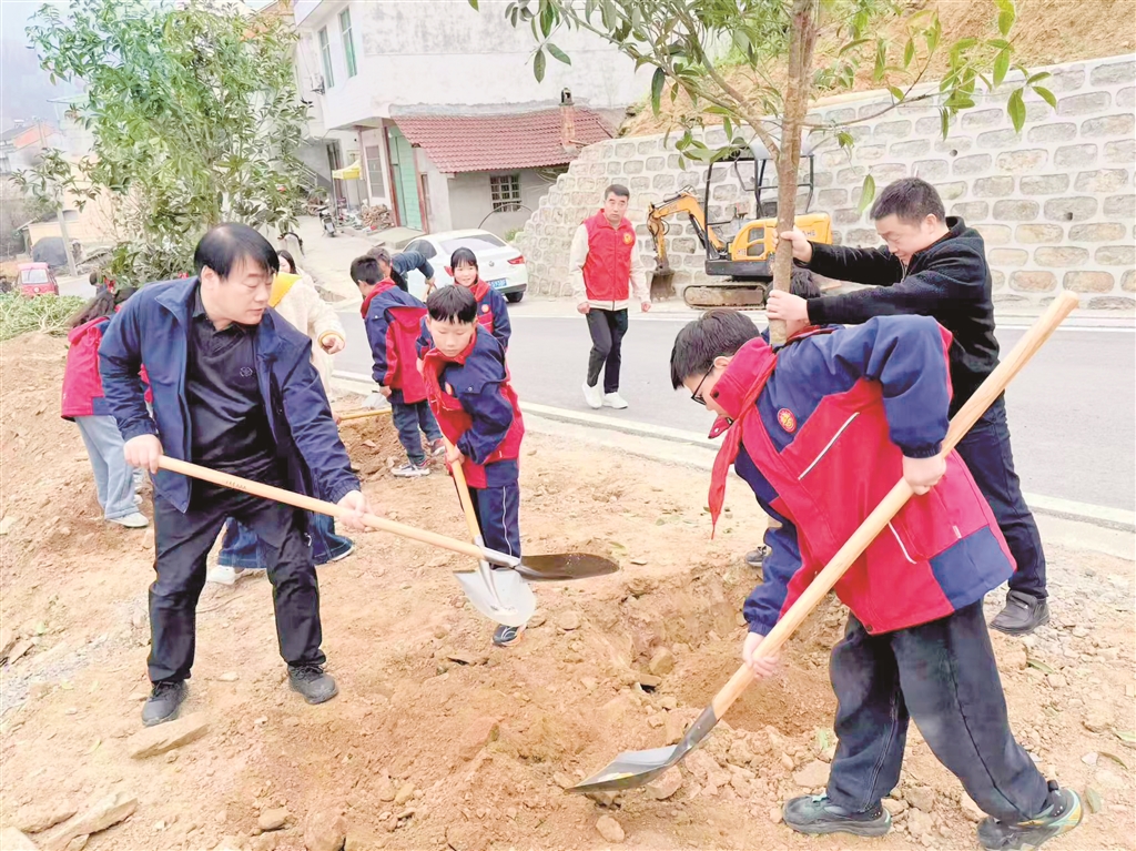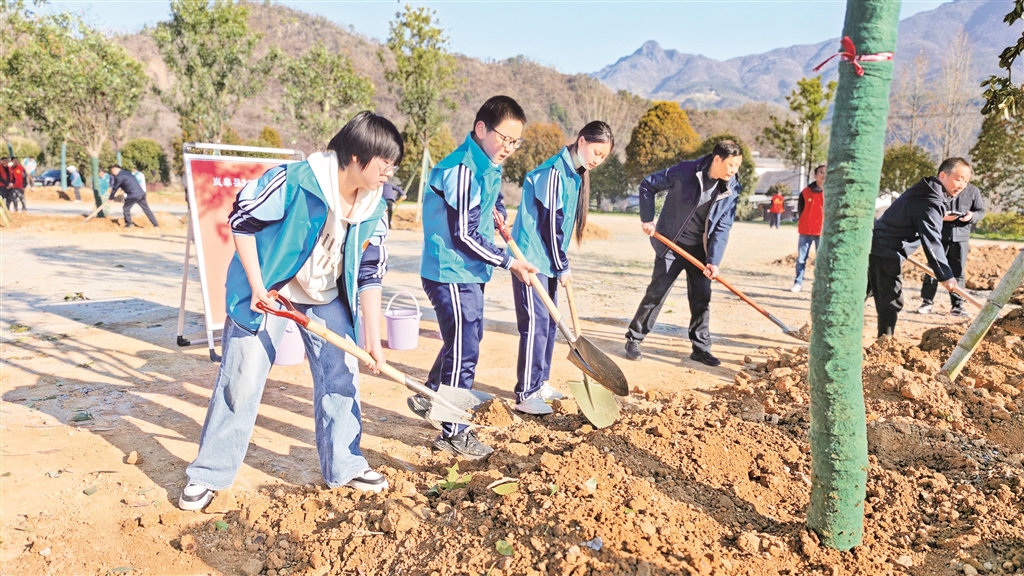 岚皋县教体局组织城区部分中小学师生开展义务植树活动。在春日暖阳下,汗水与欢笑交织,看着亲手栽下的小树迎风而立,大家脸上写满自豪。 乐晓彦 刘咨吟 摄
