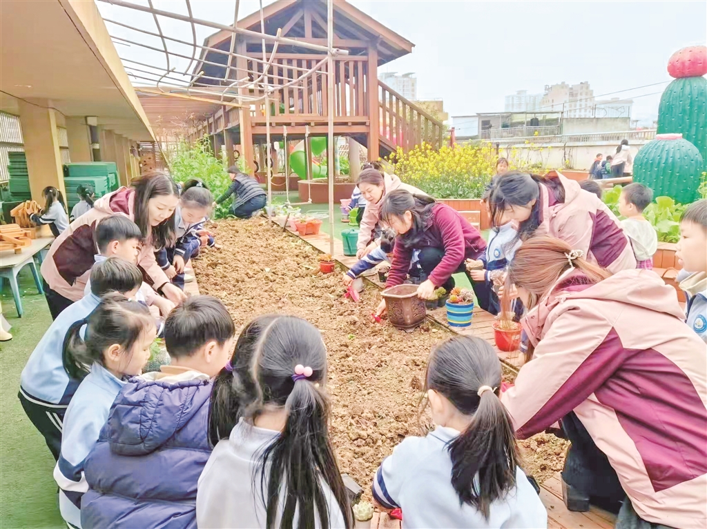 安康市幼儿园的孩子们在园内种植区开展“园丁初体验”活动,让孩子们体验劳动的乐趣。