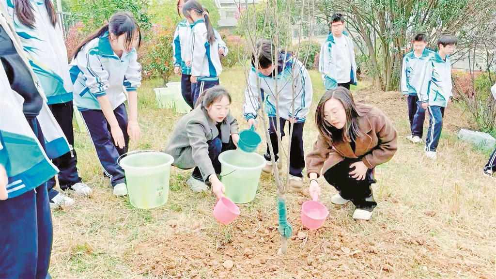 旬阳市职业中等专业学校开展“植树护绿学雷锋”主题活动,在校园共植“雷锋林”,认养树苗并开展环保宣传,用劳动实践传承雷锋精神。 高翔 摄