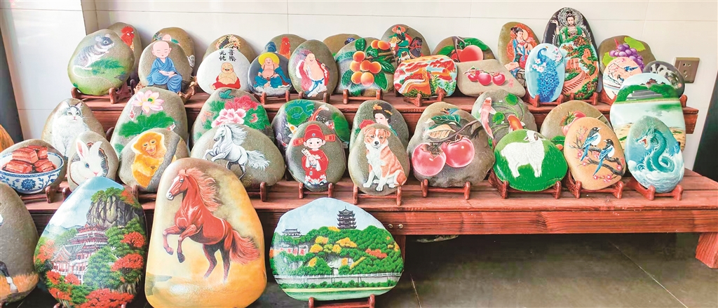 如今,李景丽的“美好石光手绘”店铺生意渐入佳境,除了销售自己创作的石头画,她还增设了石膏娃娃绘画、亚麻画、钻石画等深受小朋友喜爱的文创娱乐类目,不仅拓宽了收入渠道,也极大缓解了经济压力,更让她的民间艺术创作走进了更多人的视野。截至目前,她创作的石头画已售出50余幅,那些从江畔溪流中捡拾而来的汉江石,在她的妙笔下绽放出别样光彩,既承载着她年少未竟的梦想,也稳稳托住了她一度下坠的人生。