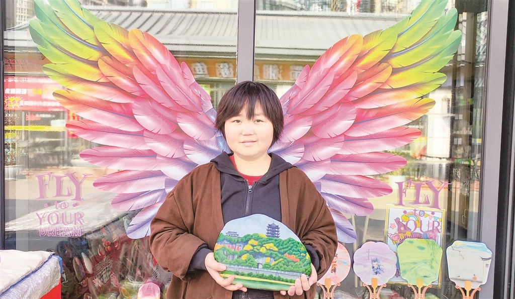 在她店铺门口的玻璃柜上,贴着一双展开的彩翼,手捧石头画的李景丽,眼神明亮、笑容温婉,恰似破茧重生的蝴蝶,历经风雨洗礼,依旧振翅翱翔,用手中的画笔续写着属于自己的芳华,也用坚韧与热爱,诠释着新时代普通人不屈不挠、逐光前行的精神力量。
