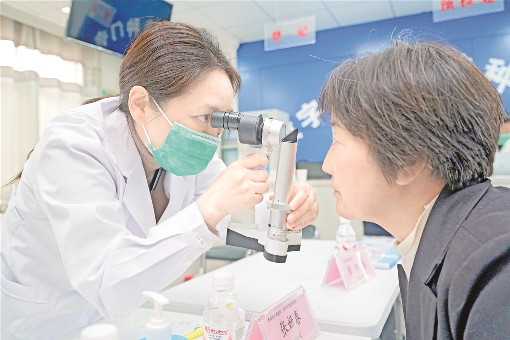 活动当天一早,白河县医共体西营镇分院便排起长队。由陕西省眼科医院副院长张妍春带队的专家团队抵达后,立即为群众提供免费视力、眼压、眼底等多项检查,建立筛查档案,并针对白内障、青光眼等常见眼病进行防治知识普及,给出个性化的随访管理建议,帮助群众实现眼病早发现、早干预。