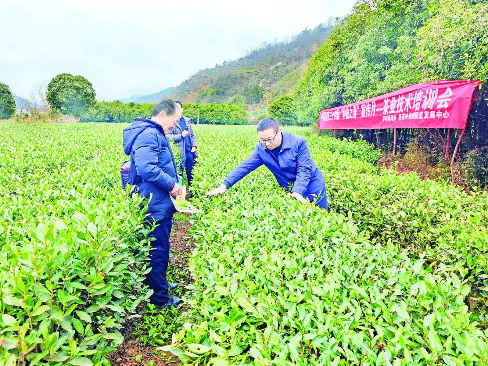 2月26日,平利县开展茶叶技术培训。图为专家在茶园指导采茶技术。
