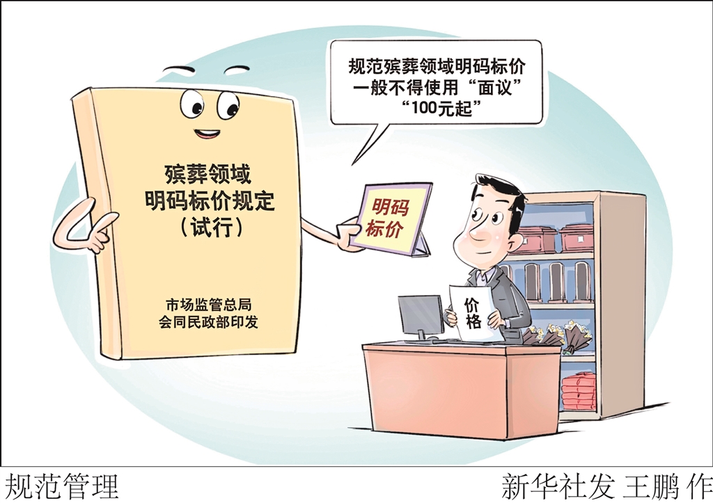 记者3月31日从国家市场监督管理总局获悉,为落实新修订的《殡葬管理条例》,加强殡葬领域价格监管,近日,市场监管总局会同民政部印发《殡葬领域明码标价规定(试行)》,为各类经营者明码标价提供分类指引。
